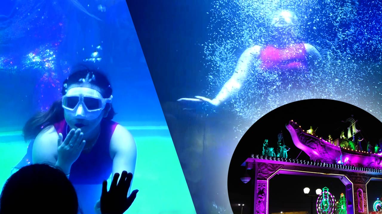 Held daily from 2 PM to 10:30 PM, the show features two young women performing synchronized aquatic routines inside a transparent tank. Visitors are pausing mid-walk to take selfies, record videos, and interact with the mermaids, who respond with playful gestures and waves. The ticket price for the show is Rs100, and the response has been overwhelmingly positive.