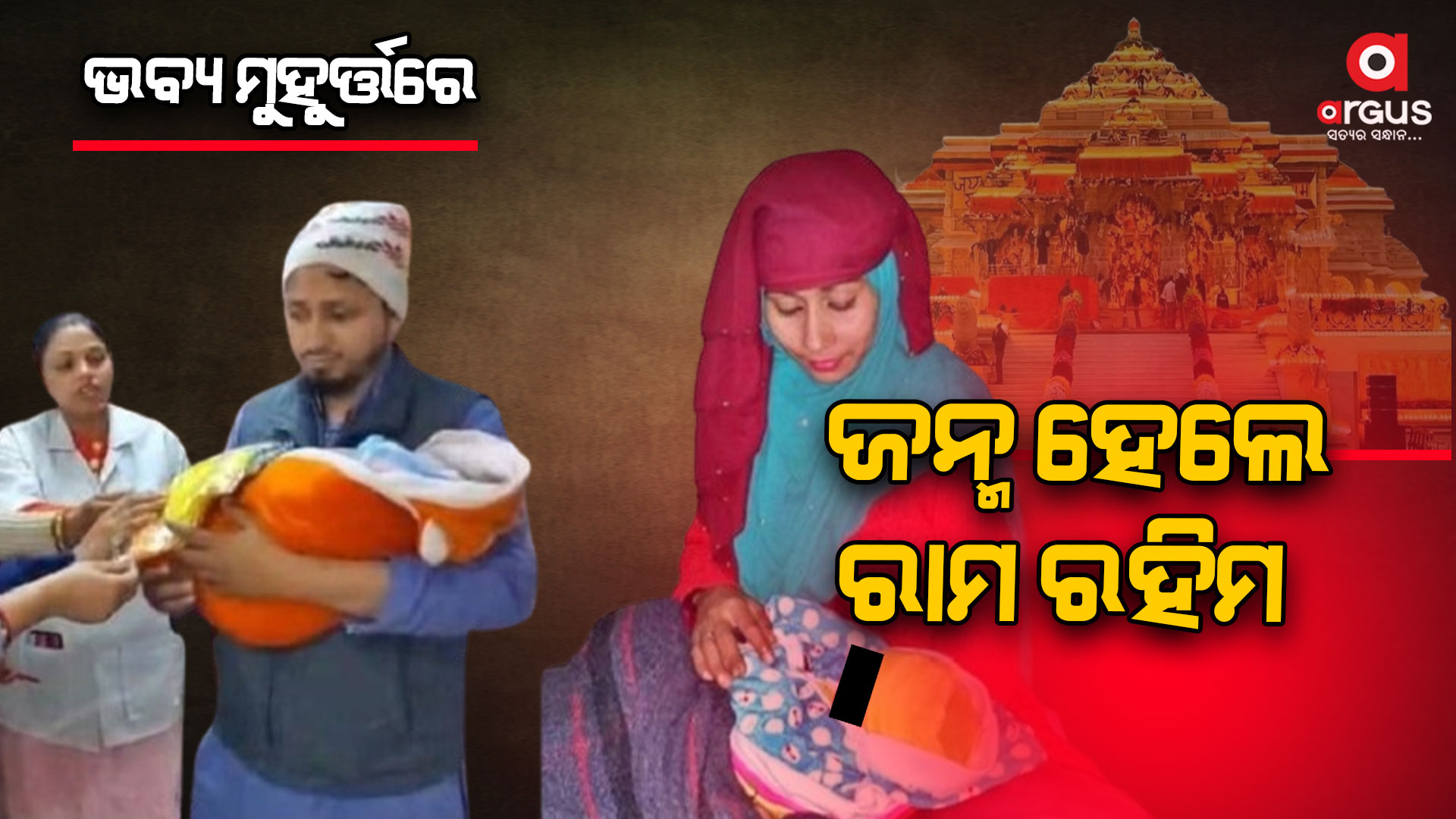ଅର୍ଗସ ବ୍ୟୁରୋ : ଶ୍ରୀରାମଙ୍କ ଆଗମନରେ ପ୍ରକମ୍ପିତ ଅଯୋଧ୍ୟା । ରାମ ଧ୍ବନୀରେ ପ୍ରକମ୍ପିତ ହେଉଛି ଅଯୋଧ୍ୟା ସହର । ଏହି ସମୟରେ ଉତ୍ତରପ୍ରଦେଶର ଫିରୋଜବାଦ ହସ୍ପିଟାଲରେ ଏକ ମୁଲମାନ ଶିଶୁ ଜନ୍ମ ହୋଇଛି । ଯାହାର ନାମ "ରାମ ରହିମ" ରଖିଛନ୍ତି ପରିବାର ଲୋକେ । ପରିବାରରେ ଖୁସିର ମାହୋଲ ଖେଳିଯାଇଛି। ପ୍ରମାଣ କରିଦେଇଛି ପ୍ରଭୁ ଶ୍ରୀରାମଙ୍କ ଛତ୍ରଛାୟା ତଳେ ହିନ୍ଦୁ , ମୁସଲମାନ ସମସ୍ତେ ସମାନ । ଉଭୟ ମା ଏବଂ ଛୁଆ ସୁସ୍ଥ ଥିବା କହିଛନ୍ତି ହସ୍ପିଟାଲ ଇନଚାର୍ଜ ଡକ୍ଟର ନବୀନ ଜୈନ ।