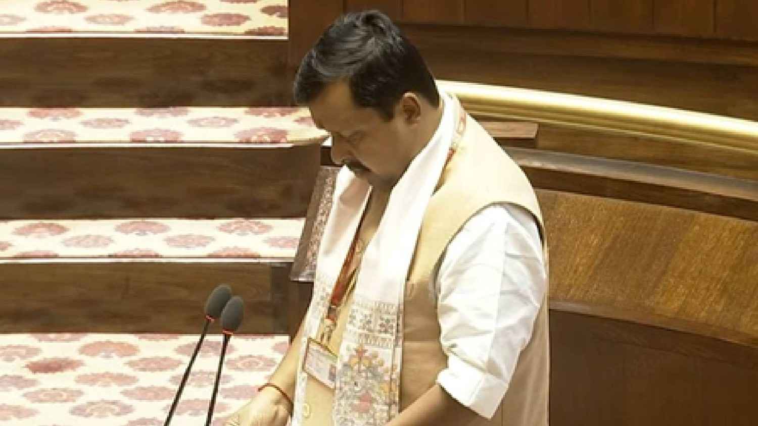 This marks BJP President Nabin's first term as a Member of Parliament. He has been elected to the Rajya Sabha from Bihar. BJP’s Shivesh Kumar and Ramnath Thakur of the JD-U, also elected from Bihar, were administered the oath too.