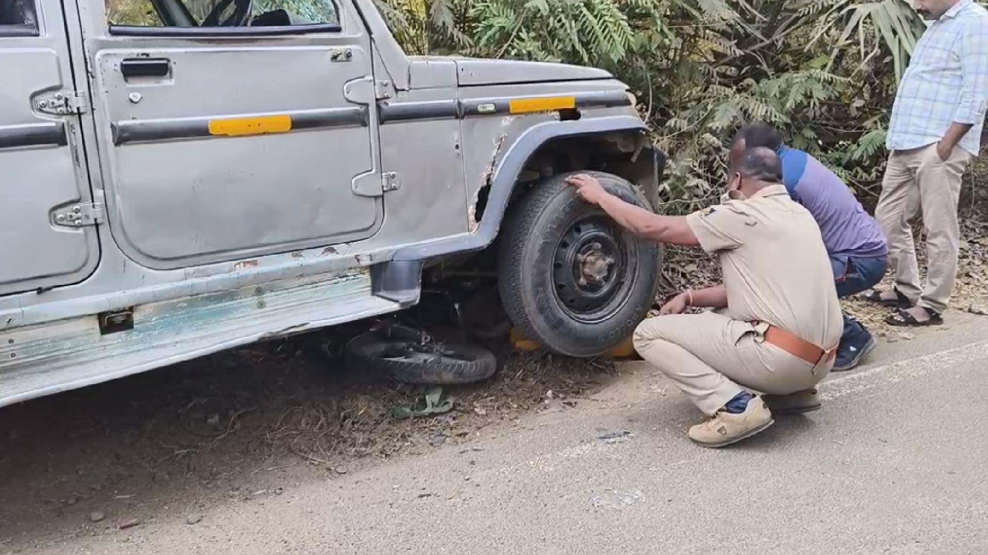 - A Bolero vehicle hit a motorcycle and dragged it for nearly two kilometres in Nuapada's Khariar area.