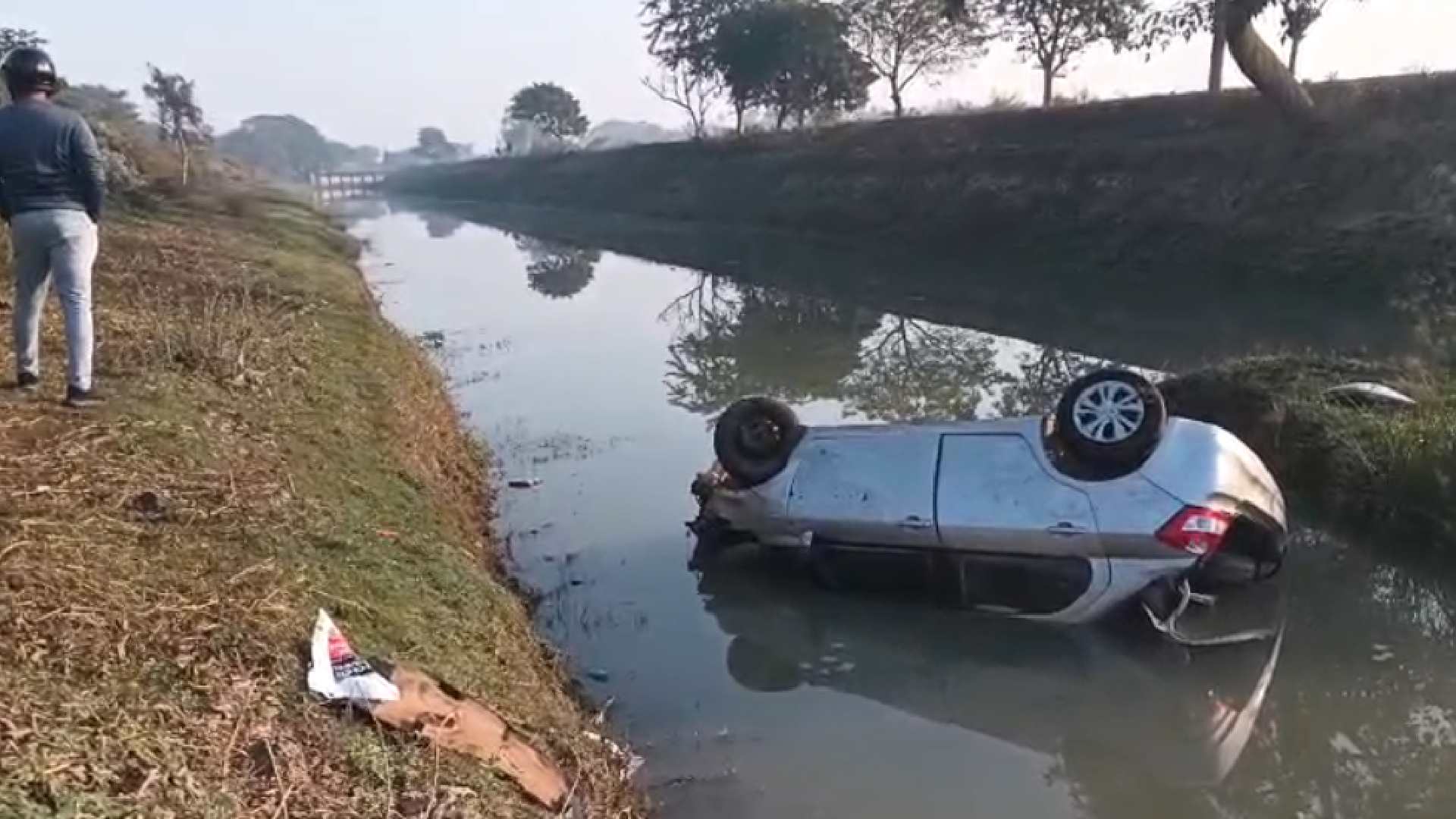 According to preliminary information, the driver was travelling from Lalitagiri towards Bhubaneswar when poor visibility caused by thick fog led the car to skid off the road and overturn into the canal. Local residents who noticed the accident rushed to the spot and managed to rescue the driver safely before emergency services arrived.