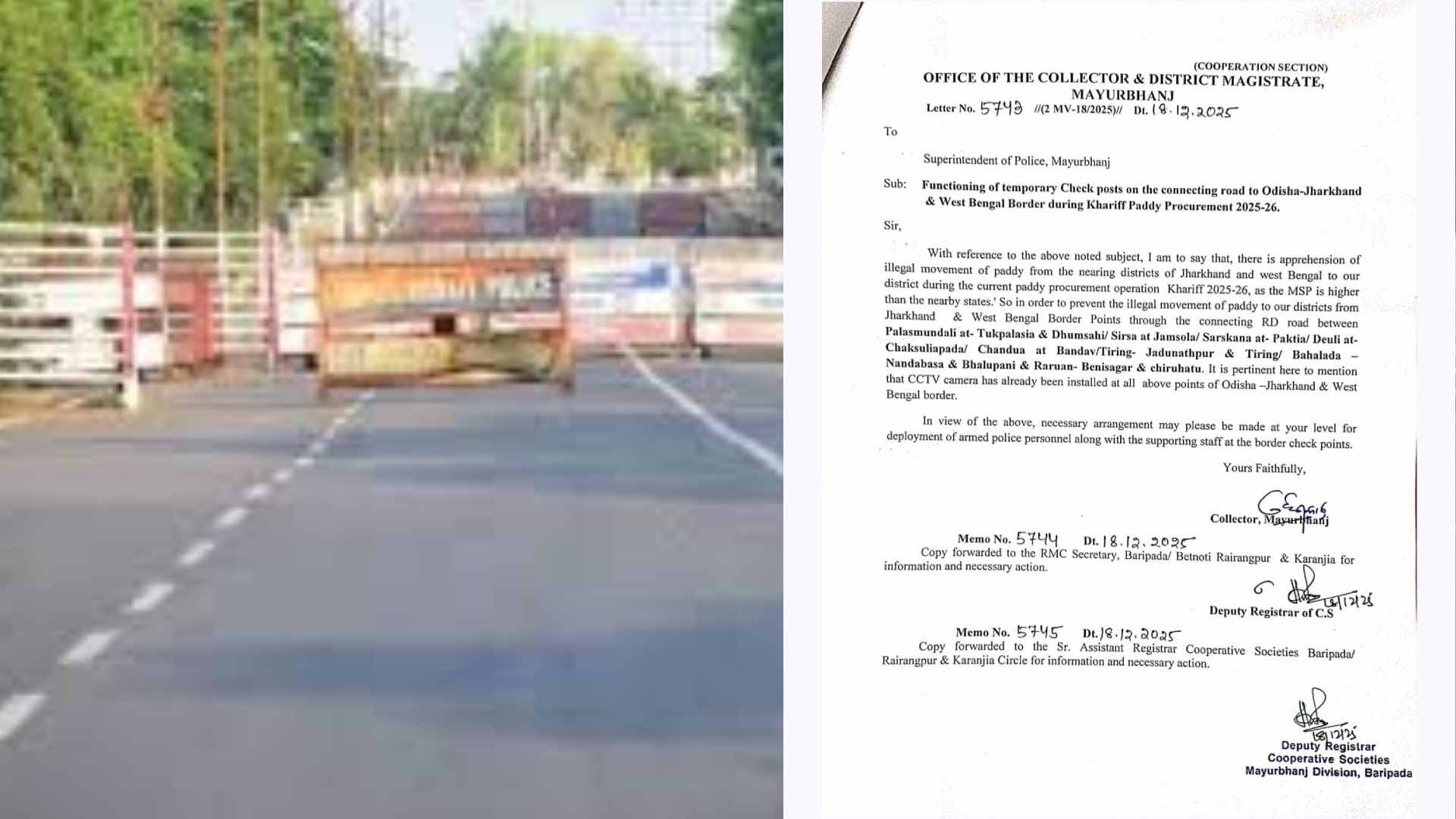 In Mayurbhanj district, the Collector has ordered the setting up of temporary check posts along rural routes connecting Odisha with Jharkhand and West Bengal. CCTV surveillance is already in place, but stricter checks will now be enforced. A letter has also been issued to the Superintendent of Police, directing measures to curb unauthorised grain movement.