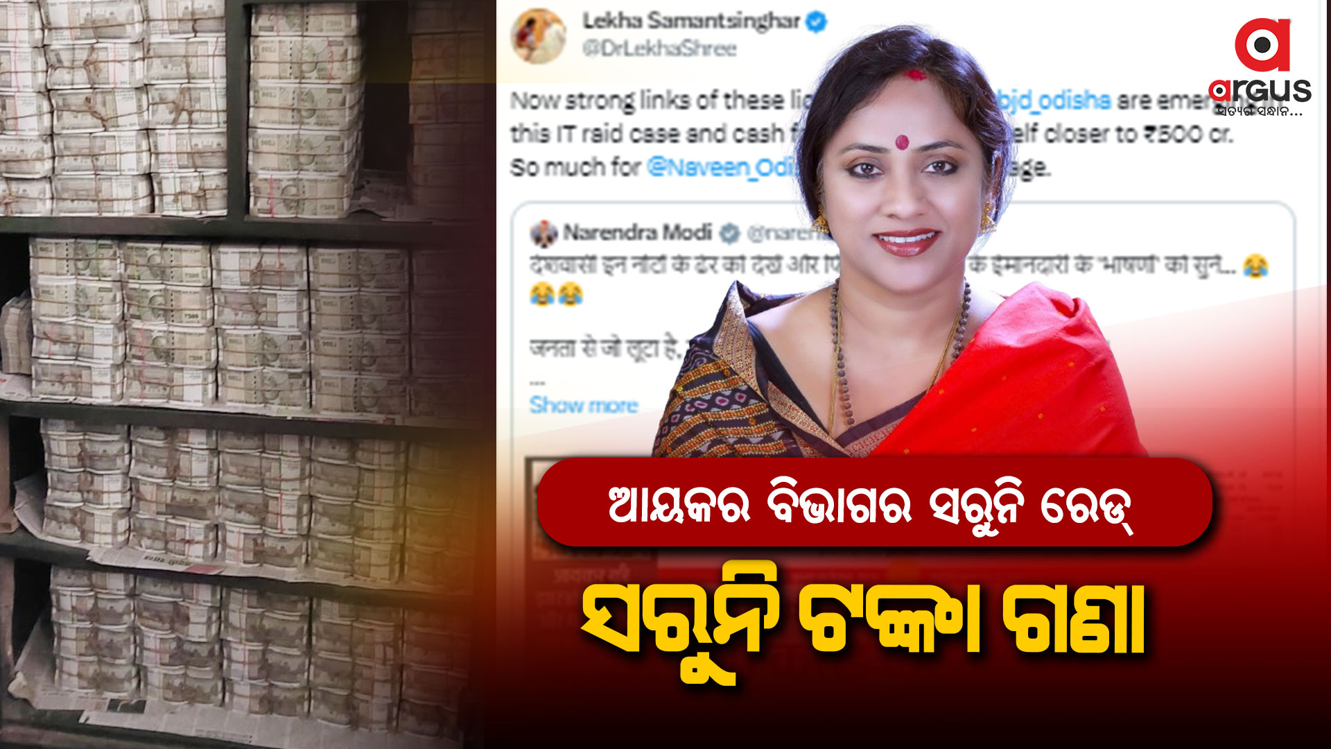ଓଡ଼ିଶାରେ ଜବତ ୨୦୦ କୋଟି ନେଇ ପ୍ରଧାନମନ୍ତ୍ରୀ ନରେନ୍ଦ୍ର ମୋଦିଙ୍କ ଟ୍ବିଟକରି କହିଛନ୍ତି । ଦେଶବାସୀ ଏହି ବିଡା ବିଡା ନୋଟକୁ ଦେଖନ୍ତୁ ଏବଂ ଏମାନଙ୍କ ନେତାଙ୍କ ସଚ୍ଚୋଟତାକୁ ନେଇ ଦେଉଥିବା ଭାଷଣ ଶୁଣନ୍ତୁ ବୋଲି କହିଛନ୍ତି । ଯିଏ ଜନତାକୁ ଲୁଟିଛି, ତାକୁ ସବୁକିଛି ଫେରାଇବାକୁ ପଡ଼ିବ ବୋଲି କହିଛନ୍ତି ମୋଦି ।
