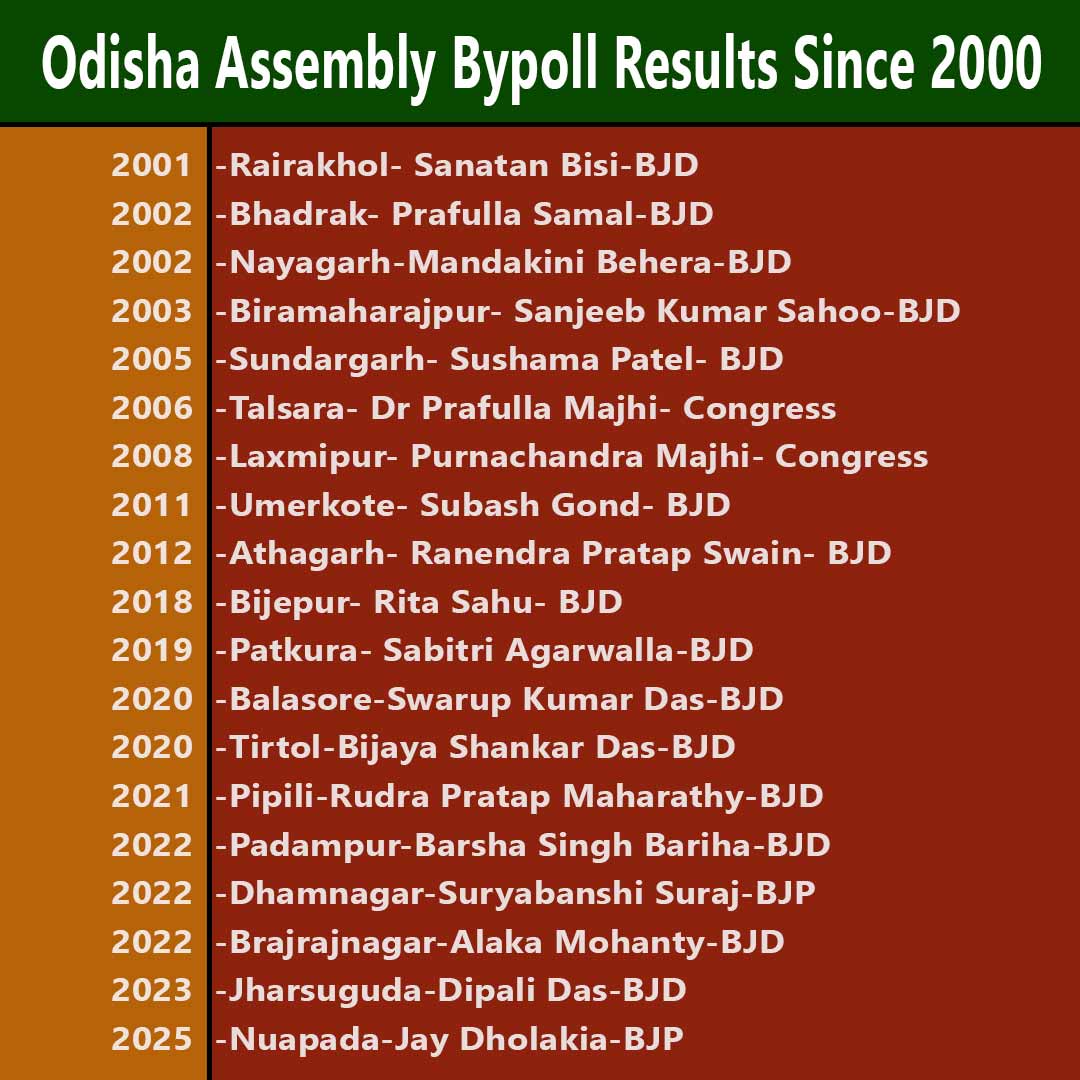 Odisha Assembly bypoll Results Since 2000