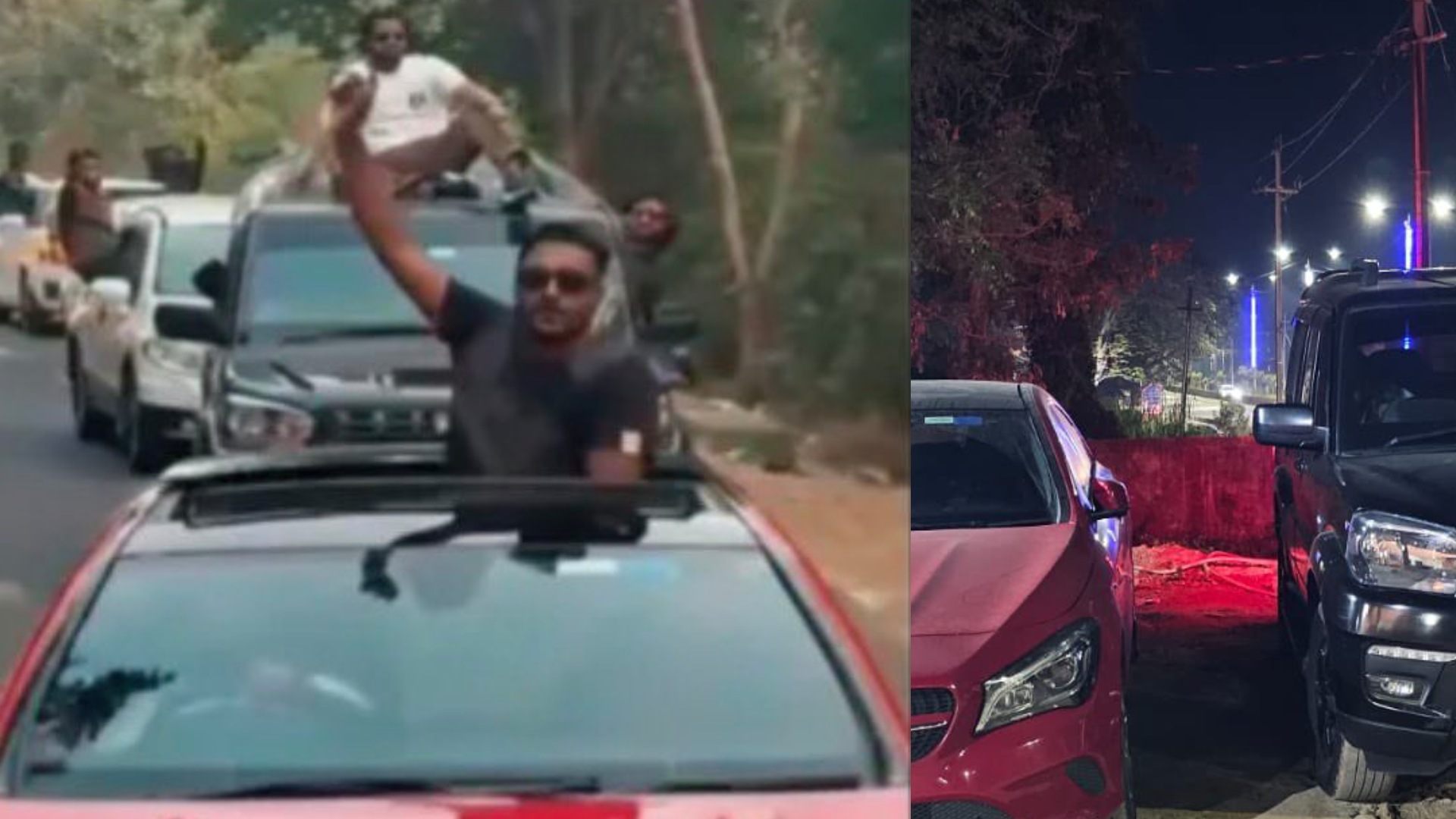 According to the source, the vehicles were driven in a reckless manner. Some individuals were seen sitting on the roofs of moving cars and posing for the camera. In one video, a youth was seen sitting on the roof of a moving vehicle while smoking.