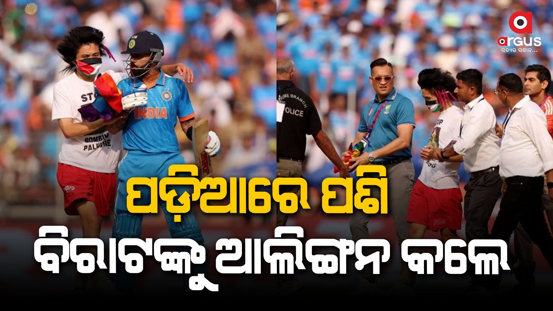 ବିଶ୍ବକପ : ଫାଇନାଲ ମ୍ୟାଚ ମଝିରେ ବିରାଟଙ୍କୁ ହଗ୍ କଲେ ପାଲେଷ୍ଟାଇନ ସମର୍ଥକ